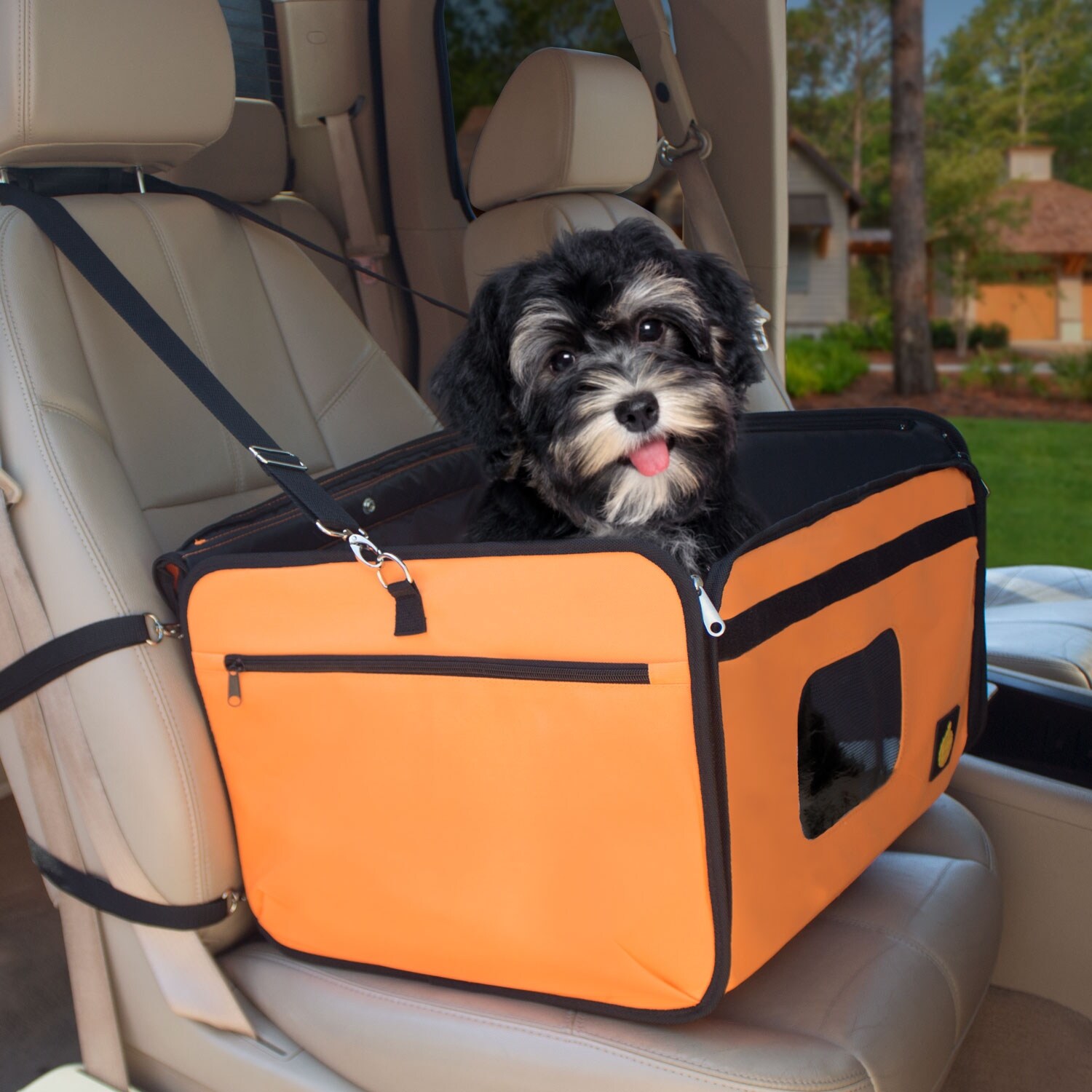Petbobi pet reinforce car booster seat for dog cat portable and breathable bag with seat belt dog carrier safety stable for travel with clip on leash and storage package 35 out of 5 stars 707. 42 out of 5 stars 286. Kurgo skybox car booster seat for dogs dog seat.